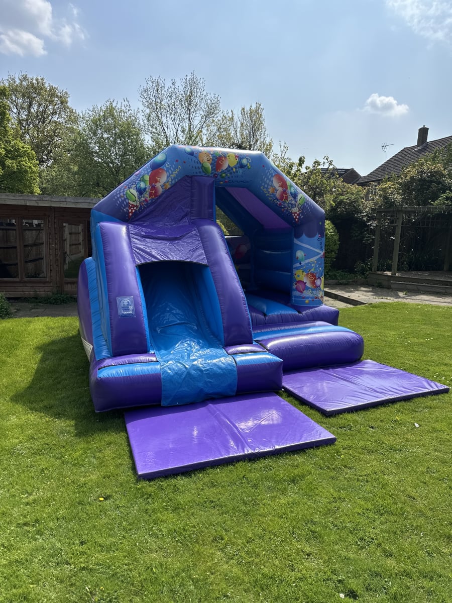 The Front Slide Bouncy Castle is one of the most versatile inflatables in our collection, giving children the best of both worlds. With a large bounce area and a built-in slide at the front, it’s perfect for kids who love variety and action at birthday parties, school events and community fun days. The bright artwork and balloon theme make this castle suitable for boys and girls of all ages, and its compact shape means it works just as well in narrow gardens as it does in larger halls.